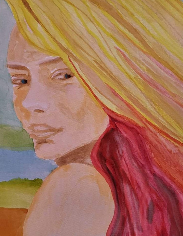 - Description: Over-shoulder gaze cuts through veiled deceit. Fury pulses beneath a fractured heart. Daylight, landscape crowds behind my face—brushstrokes cipher ancestral shadows. Witness; Secrets bleed where trust once slept.