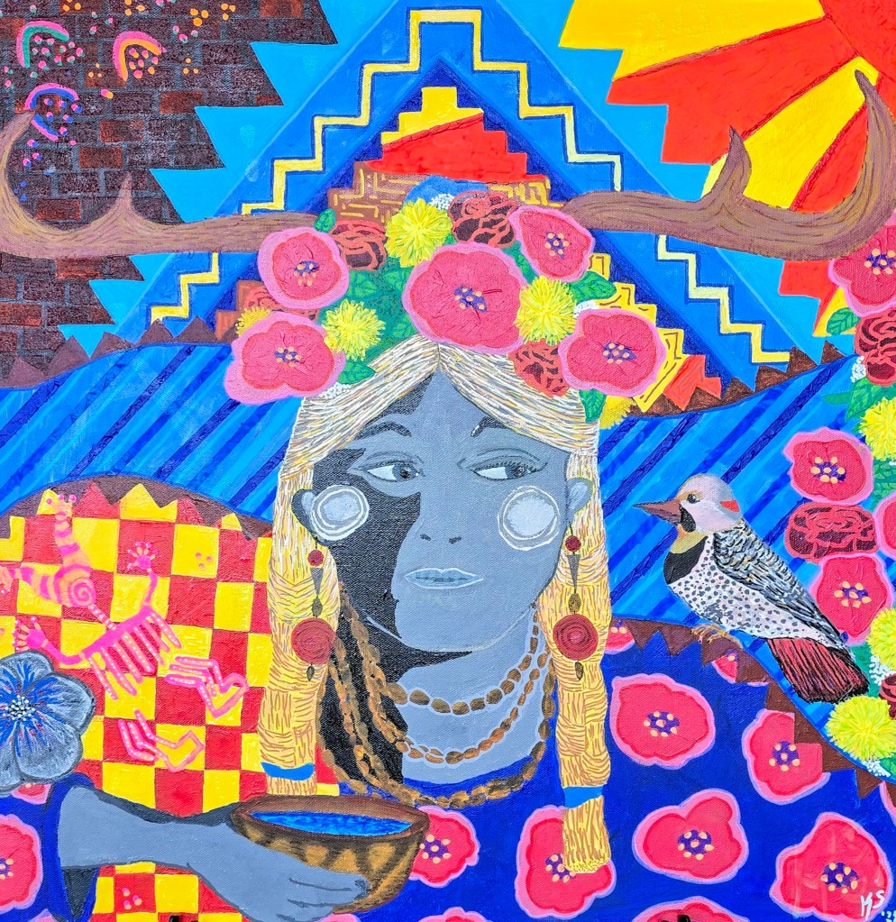 Description: “Reflections of Heritage” merges pain and strength into luminous defiance—a river of identity, unbroken. This piece is not just art; it is legacy made tangible.
